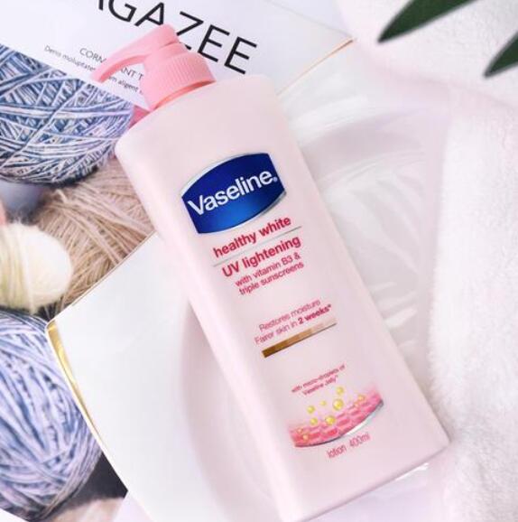 凡士林这款身体乳真的可以说是我用过最长时间,回购最多次的一款啦,粉粉嫩嫩的瓶子包装,刚开始是抱着试一试的态度,当时是看中它里面除了保湿以外还含有烟酰胺美白成分,在保湿的同时,还能达到美白提亮肤色的效果。质地是白色偏乳液状的,味道是淡淡的植物花香味,还是很好推开涂抹的,非常的润,而且没有黏腻的感觉,皮肤变得很润滑,整体来说滋润度还是可以的,而且非常的温和,坚持使用了一段时间,感觉皮肤光泽度要好很多,美白效果还是蛮不错的。