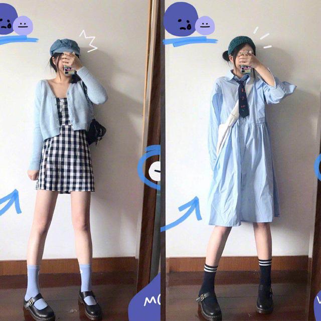 蓝色的衬衣连衣裙是适合走可爱风格路线的,比较适合清纯一点的小个子女人,裙子的是淡淡的蓝色,非常的宁静,给人的气质也是很不同的。