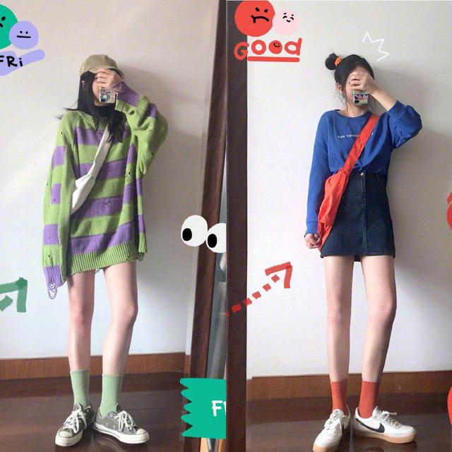 裙装与一件藏蓝色的牛仔裙相配,特别的有同色感,穿的时候把上衣塞到裙子里面还能够显身材,尤其是对双腿的修饰起到了很重要的作用。蓝色和桔色还是对比色,给人很强的视觉冲击力。