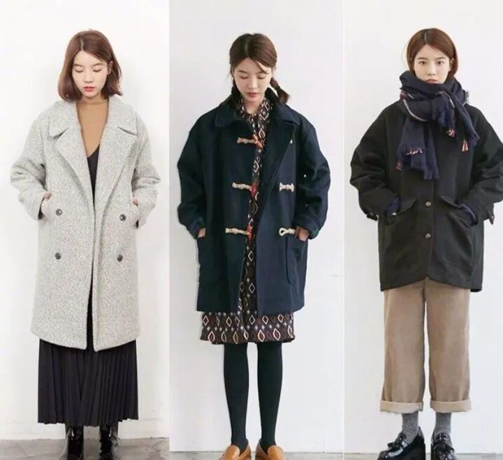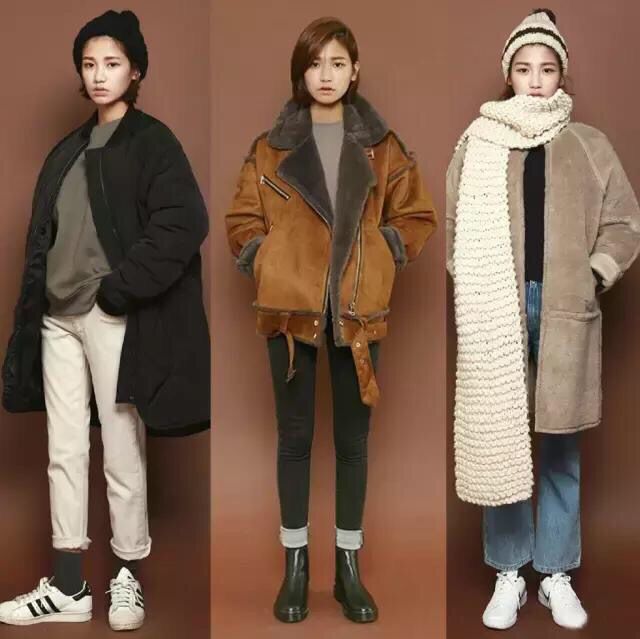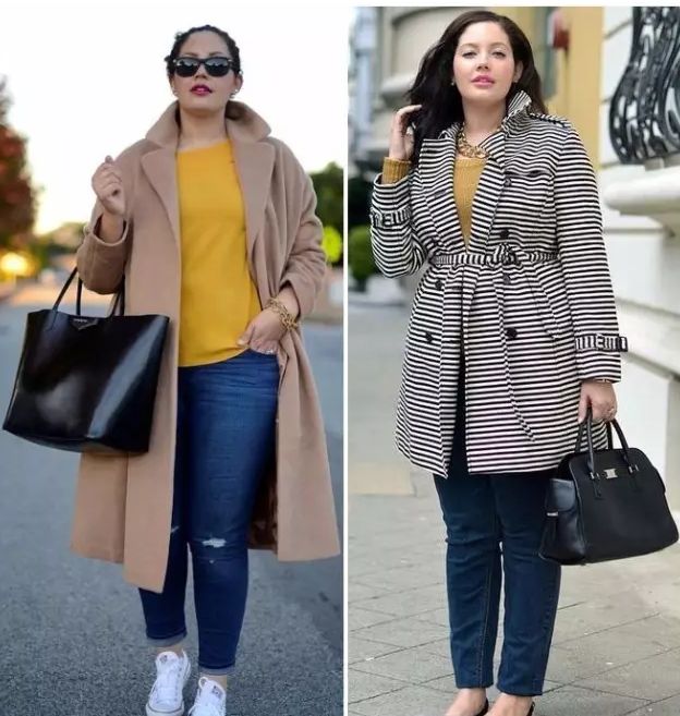 长外套,可以盖住屁股和腿部的肉肉,需要注意的是要保持着部分敞开,像右图看起来裹得紧绷,就不会显臃肿。