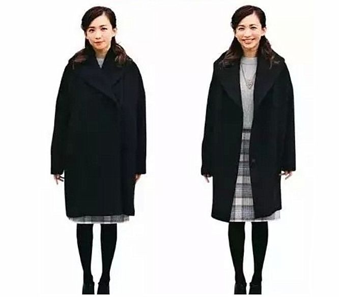 不少姑娘穿大衣时,不喜欢系扣子,觉得这样会更漂亮。其实这样做,还让你看起来变得瘦高了。同一件大衣,连内搭也是完全相同,但系上扣子与解开扣子会有完全迥异的视觉效果!