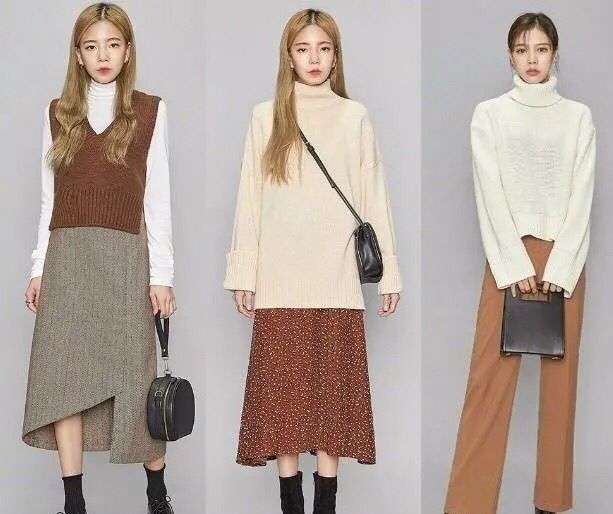 天气不算冷的时候可以穿得轻盈些,适中的毛衣在秋天已经很足够,下半身搭配有垂感的单品已经可以显得非常有气质了!