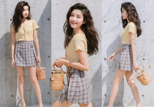 这是很适合上班族的一款穿搭,很知性美的格子半身裙,包臀的设计,很提臀,男装搭配。性感又清凉,很能穿出你曼妙的身姿,侧边开叉的设计,超级显腿长,也不再像基础的款式那样,单调无趣,而多了几分个性时髦感,束腰搭配浅黄色t恤,让你的穿搭瞬间吸睛亮丽,轻松打造夏季的慵懒风,青春又减龄!