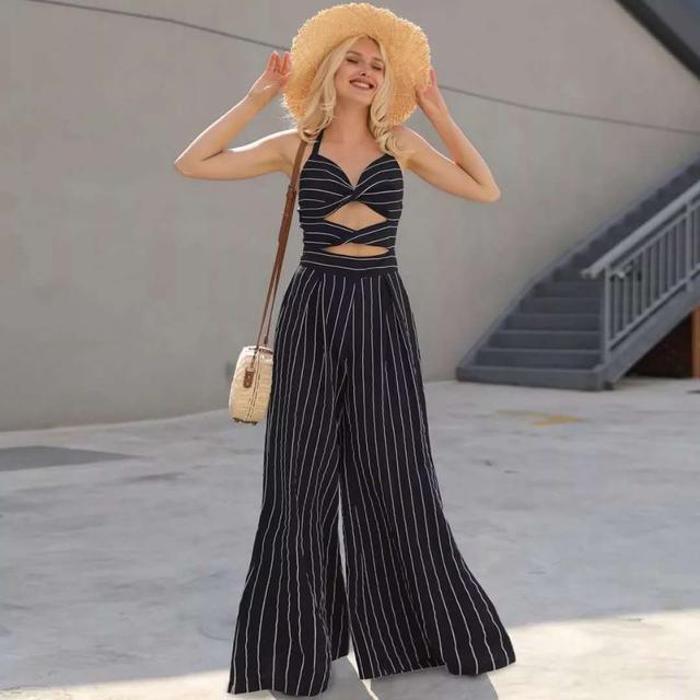 缎面材质的连体裤自带华丽的垂坠感,穿在身上又十分的顺滑舒适,深受大家的追捧。女装搭配!特别是纯色的吊带缎面连体裤,兼具质感与女人味。自带长腿特效的吊带连体裤,再加上竖条纹的修饰,又在视觉上拉长了下半身的比例,让小个子的女生们分分钟秒变长腿星人,在选择颜色上面,挑颜色更加丰富一点的竖条纹会更有春天的感觉。但是,你如果觉得单穿吊带连体裤有些暴露,那么可以在里面内搭一件T恤,同样也能够穿出时髦感。