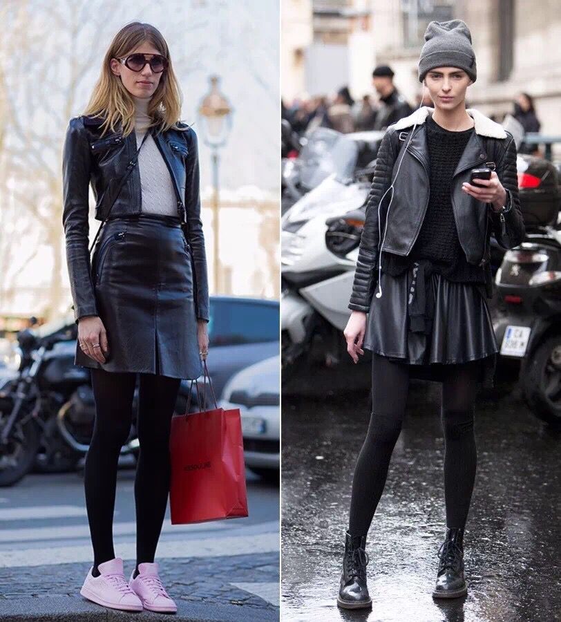 在Vivian看来,有温度有质感的皮裙更适合冬天穿。夏天穿总觉得不透气有点热,冬天穿才刚好呐~况且在 冬天穿皮裙可以穿上黑色保暖袜,两种不同的材质,一硬一软,搭配起来一点都不违和 。