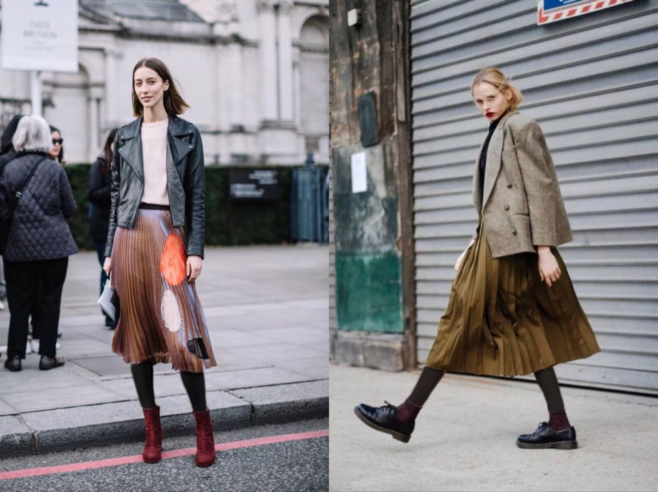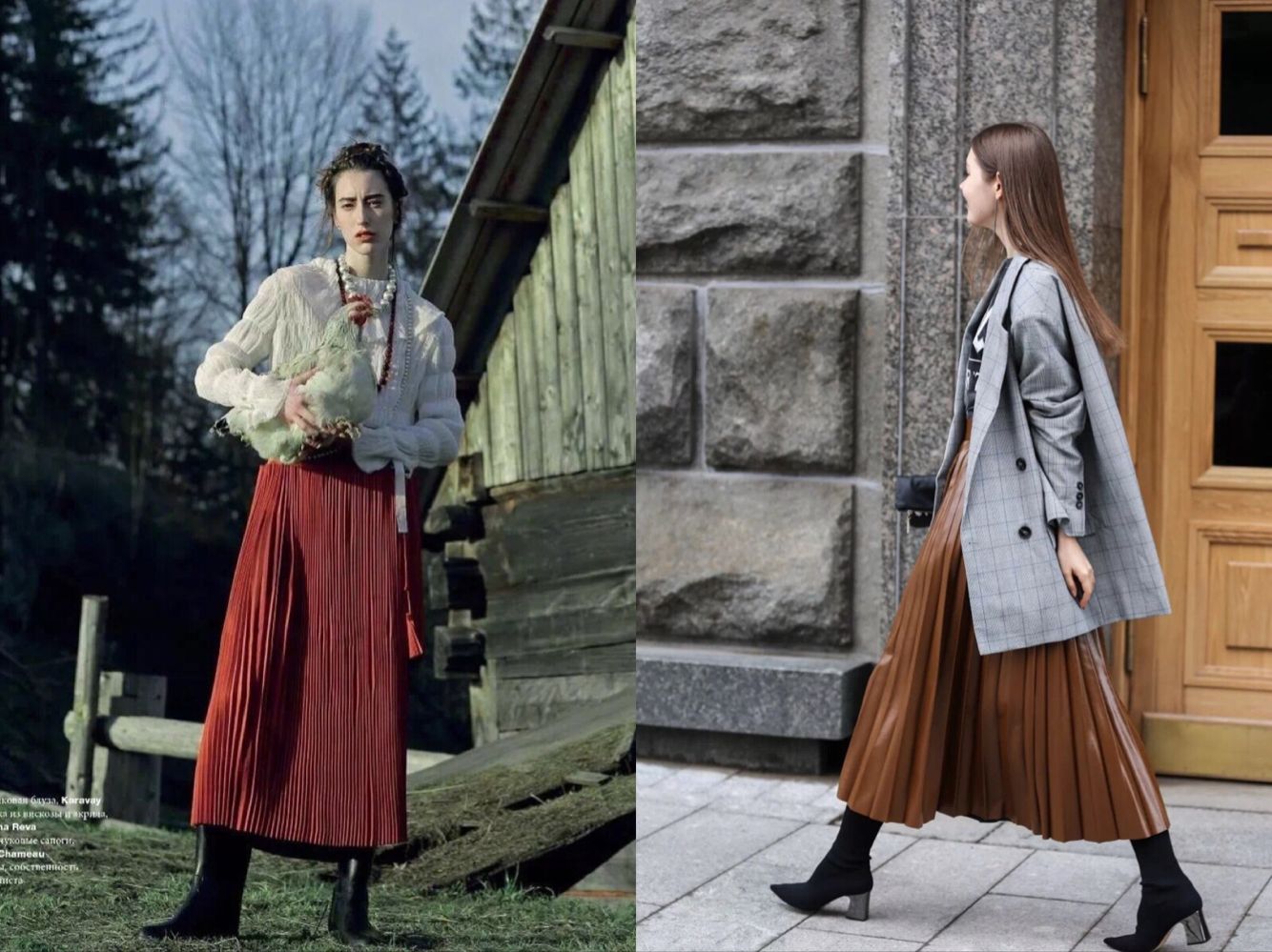 百褶迷笛裙火起来也不是没理由的。它的长度就很讨喜,到小腿位置,无论是搭丝袜还是搭长筒靴,都比短裙的保暖系数更高,而且还超百搭,只要是外套就可以和它友好相处 。