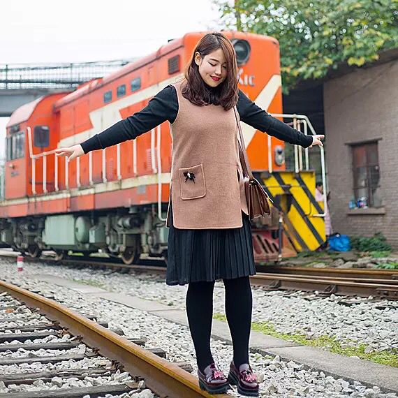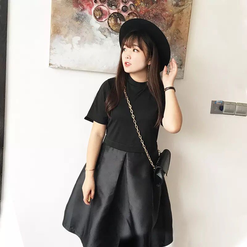 ◆假两件连衣裙:这样的假两件连衣裙其实在某一个方面来说是很适合胖妹子的,胖妹子的肉肉最容易显行就是因为被勒出来,而衣服和衣服之间的码数有时候又差很大,所以搭配的效果反而不如这样的假两件。