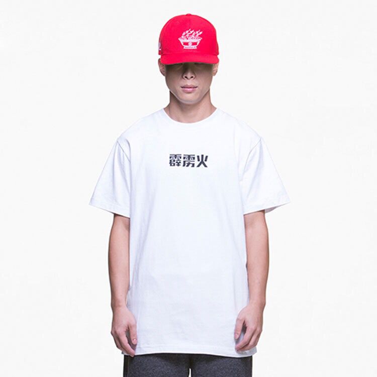 简约的白T加潮流文字是今季CLOT的系列之一,这款白T是罗纹圆领款式的,前片简单的“霹雳火”文字印花,耐看又实穿,搭配性也强。