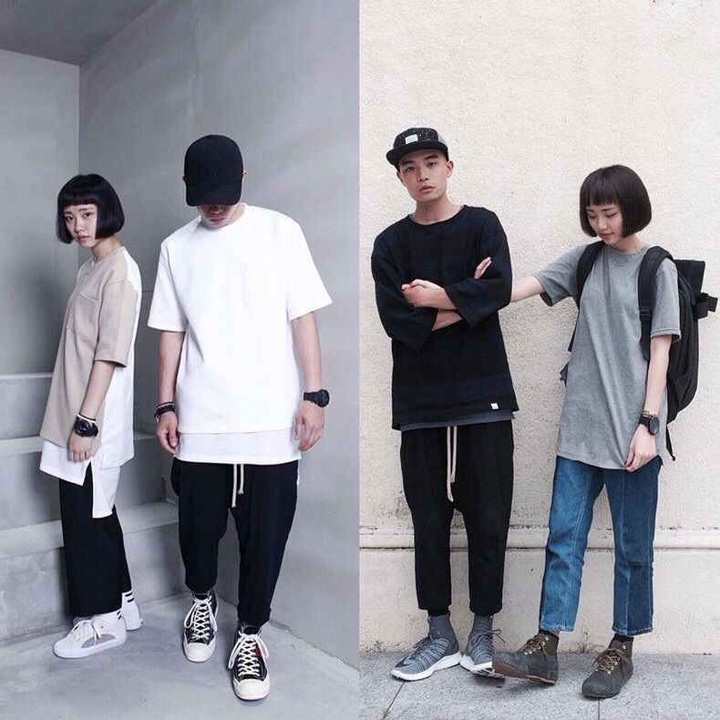 极简风T恤搭配休闲九分裤或者中短裤,再来一顶五片帽,脚踩时下最in的袜套鞋,高街味十足,干净利落。简约高街风的情侣装也超有cp感~