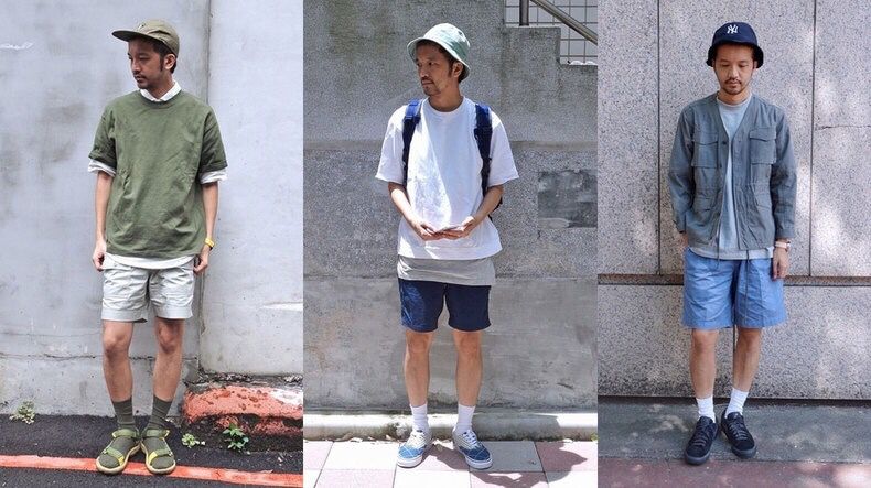 首先是工装风,工装风在港式潮男的圈子一直热潮不减,复古的五片帽不能少,简约宽松的工装衬衫,内搭背心或者T恤衫,下身搭配休闲的多口袋的工装裤,再来双帆布鞋,搞掂~