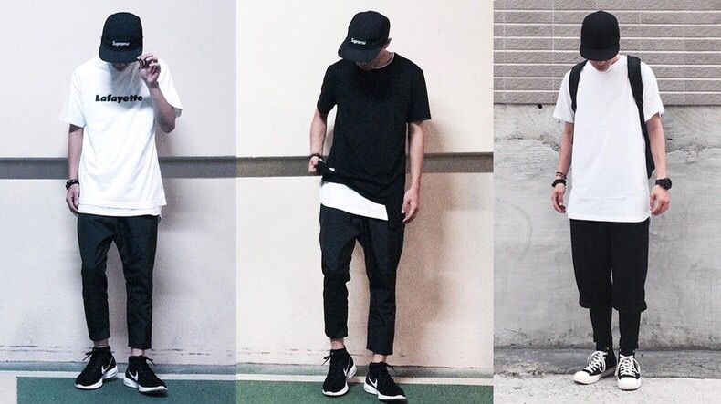 再来是简约的高街风,简约的高街风格可以说是港男最常见的穿衣风格了,黑白灰配色毫不落俗,内搭一件背心的叠穿技巧,让整个look更有层次感~