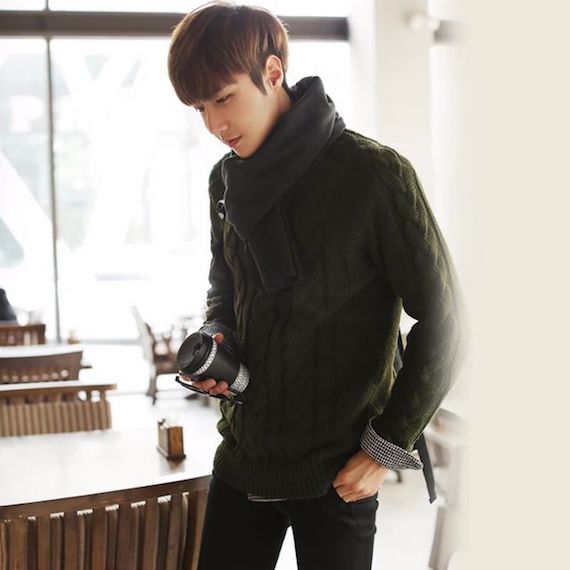 ▲圆领套头男士粗针织衫,如何搭配围巾,4招围巾系法带你领略时尚纯色粗更显暖男气质,加厚保暖性能高,冬季在也不怕寒风来袭,复古复古,衬托男性的绅士文艺气息。精选优质面料,亲肤感好,不扎人。