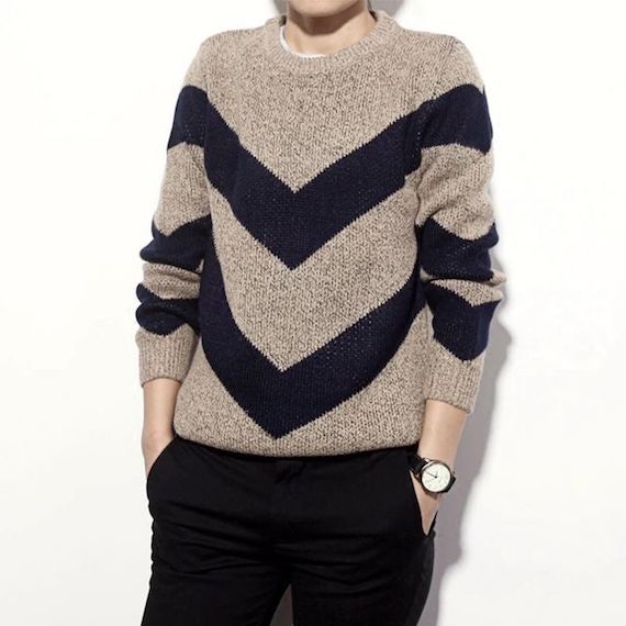 ▲粗针套头毛衣,这是一款条纹撞色搭配的男士秋冬毛衣,颜色搭配明亮清新,搭配休闲裤清爽阳光。邻家大男孩的气质便凸显出来,街头风十足。