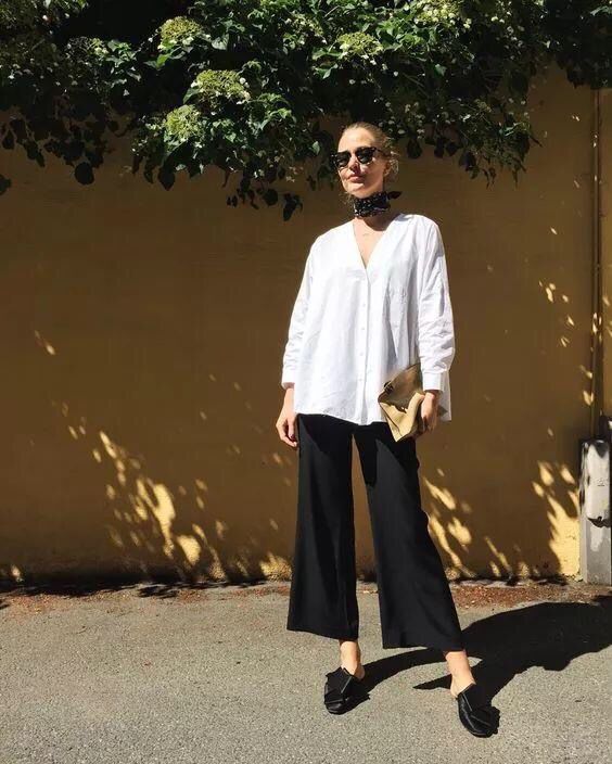 “上松下紧”的穿法和适合苹果型身材,因为肚子有肉所以用宽松的上衣来遮盖,穿一条凸显身材的紧身裤,很是好看呢~紧身的背心穿出了上身的纤瘦,阔腿裤不仅遮腿瘦还增加了时髦度!