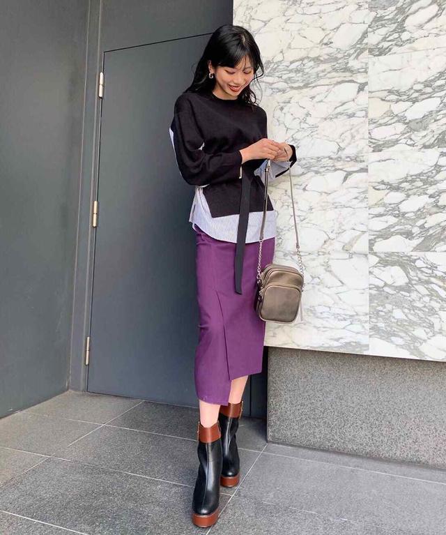 看过了这么多的半身裙,包臀半身裙是比较性感的,每个女人都想拥有魅力,都想要美丽,往往有时候身材的差异会使她们陷入苦恼当中,对于衣服的选择也会非常的的面化。直筒裙不仅仅能修饰身体的不完美,紫色的颜色也给了她们不一样的风度感。手提拎包的搭配也是重中之重,为了能更好的显现,金属色的包包让人眼前一亮。