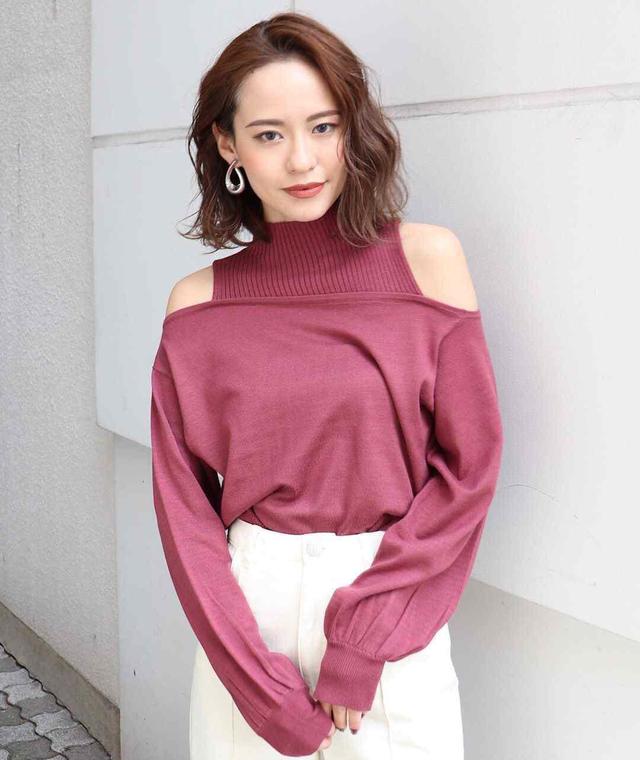 粉紫色露肩针织衫是比较妩媚的一件单品,而且肩部以上和肩部以下的设计也是非常不同的,整体而言是比较宽松的,所以穿在身上也比较温柔。搭配一条白色直筒裤,所表现出来的内在气质令人倾心不已,白色的直筒裤,在修饰腿型的同时还起到了一个作用,就是会将一个女人显得格外有涵养有内在。