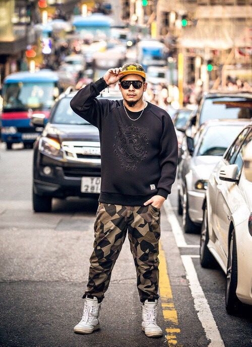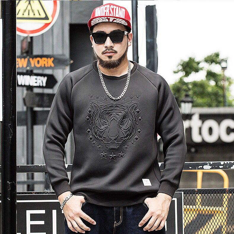 黑色太空棉材质的老虎头卫衣,挺阔的版型干练利落,搭配迷彩休闲裤,酷感十足的街头装扮散发着型男的不凡魅力!绝对是撩妹必备的时尚穿搭。追逐时尚?那你还不如抓紧这件卫衣不放