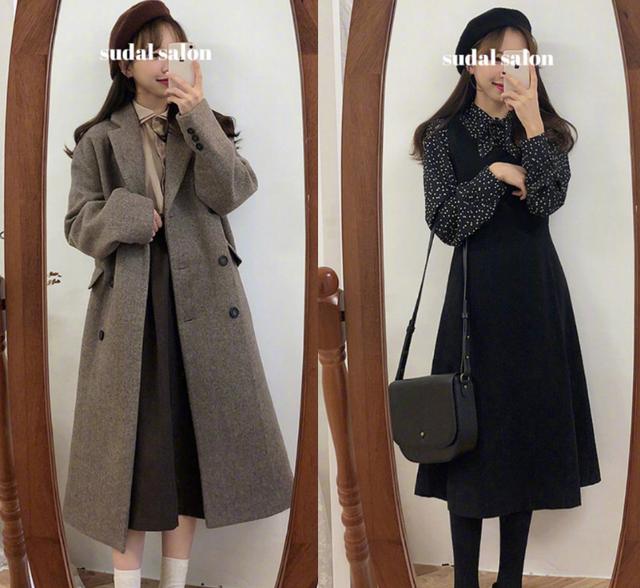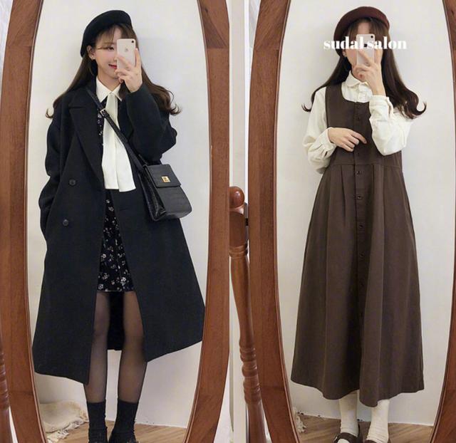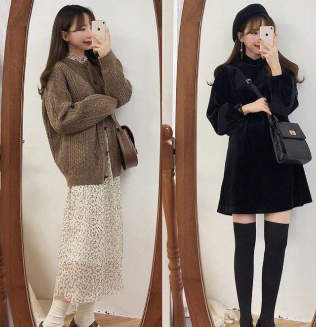 对于很多人来说觉得裙子不会穿出时尚又甜美的风格,其实只要裙子选择对了,不管是什么样的身材,冬季甜美穿搭图片女生都可以穿出甜美又简明的风格。而这两款连衣裙采用的是收腰设计,会让整个腰身看起来更加的纤细,而第1款上身是白色,而下身则是深咖色的这样的连衣裙会受到很多女孩子的喜欢,如果穿上这样一套连衣裙会让人误以为是十七八的小仙女看起来格外的年轻。而第2款学院风会更加的重一些,领口处采用的设计会让人觉得更加的甜美。