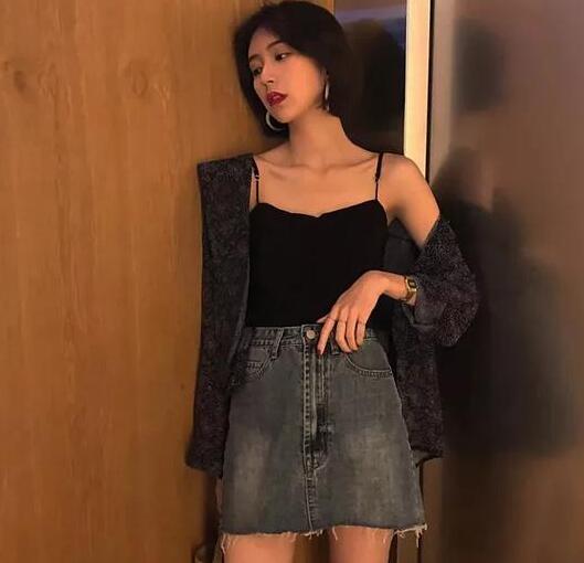二、牛仔裙配有上衣字领。小编介绍的第一种穿搭配背心的方式更帅气。这个词衣领上衣会有另一种感觉,因为衣领上衣这个词本身就有很淑女和一些性感的感觉,而搭配上的裙子更凸显了这种女人的气质。牛仔面料也增添了几分俏皮和青春不算特别性感。