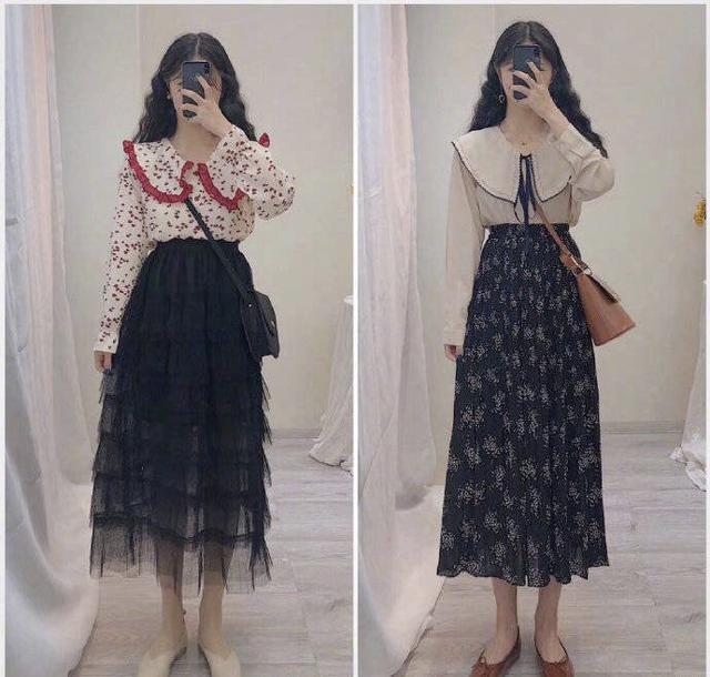 娃娃领衬衫上面还铺满了心形形状的波点,是非常甜美的一件衣服。娃娃领的设计也是将女人的可爱之处不加掩饰的表现了出来,这种女人能够在某一个瞬间激发别人保护欲。裙子搭配一件纱质的蛋糕裙,依然甜美,依然令人着迷,穿上身显得优雅气质,搭配也是非常受欢迎的。一双尖头奶奶鞋既修饰双腿腿型,也能为衣服搭配服务,从而提升整体颜值。女生下身穿什么好看图片