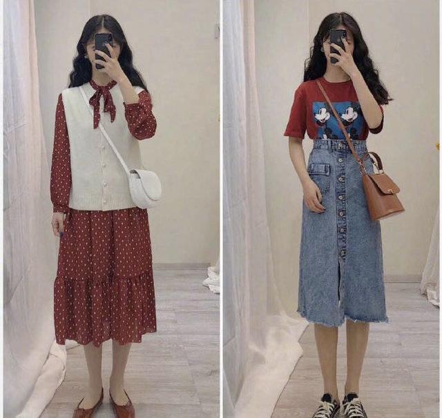 这套衣服对于身材偏胖一点的女人来说,简直是合适的不能再合适了。女装搭配。裙子的长度刚好过膝盖,小腿部分的最为纤细,让整个人看起来比原先纤瘦了不少。外面搭配一件毛衣背心,这件毛衣背心的最大作用就是显瘦,无论你腰部上还是背部上的赘肉,全部给完美的遮挡起来,根本不用有任何的焦虑,可以放心大胆的穿!