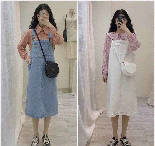 橘色衬衣低调含蓄不失优雅温柔,是让人为之羡慕的颜色。这样的一件衬衣外面搭配一件天蓝色的牛仔背带裙,更偏文静一些。宽松且直筒的裙子可以说是适合任一种腿型的女人,而且背带裙非常减龄哟。一些轻熟女在外出游玩时,一样可以尝试这种穿搭方式,从而找到年轻时候的状态。