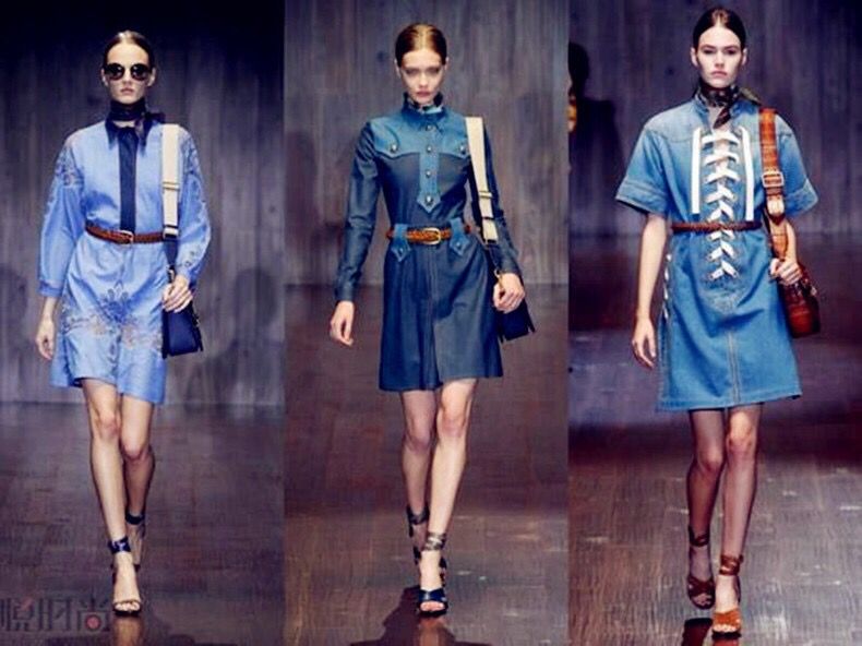 不规则的着装设计,在时尚中很是流行。而貌似夸张的明显设计,点缀在牛仔裙装中,那种恰到好处的感觉,给你经验的时尚感。