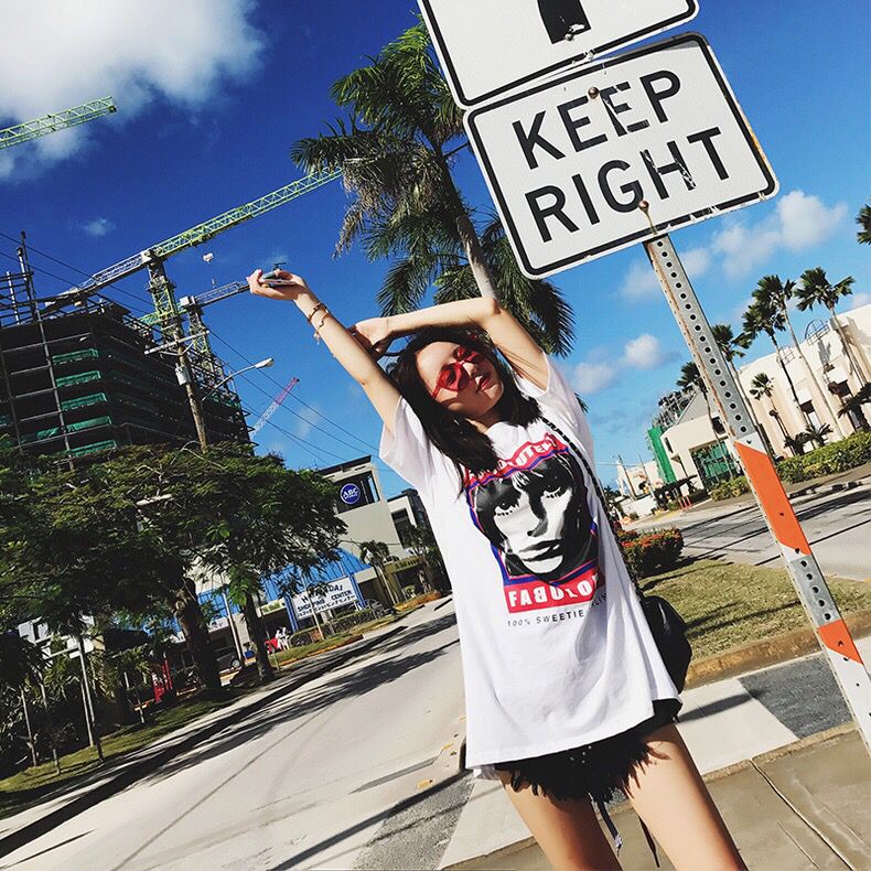 人像印花可是今年的流行趋势哦,穿这样的T恤不会错,打造出时髦高街LOOK,彰显出个性的同时又很抢镜,再加上破洞元素,潮出了新高度。