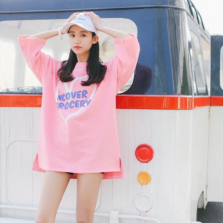 充满少女气息的一款T恤裙,嫩嫩的芭比粉色轻松俘获你的心,而心形的印花也很有青春活力,很适合学生党或者年轻的女生穿,侧边的开叉也很有细节感。