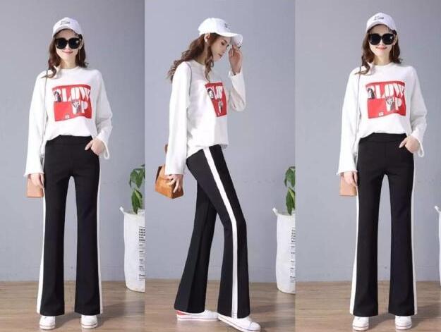 说到喇叭裤,自然会给我们复古的气息。这种裤子以前很流行,但2019年也很流行。它的腿又细又长。这是一条运动风格的喇叭裤。搭配屋。高腰+侧条纹的设计优化了腿部线条的比例。这是腿形和体形的全部要素。它真的很漂亮又多才多艺的黑色,怎么穿好看,在这里选择一件白色的毛衣,整体造型是超薄显高。