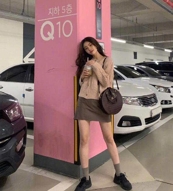 如果你不喜欢套头款式毛衣的话,那就可以选择最近比较流行的开衫毛衣,这样就可以避免化妆以后套头的风险了,这次的小姐姐选择了一款浅色的针织开衫,整体粗纹的针织方式,让它看上去更具有立体感,下面同样搭配短裙,让他看上去更显高很多。