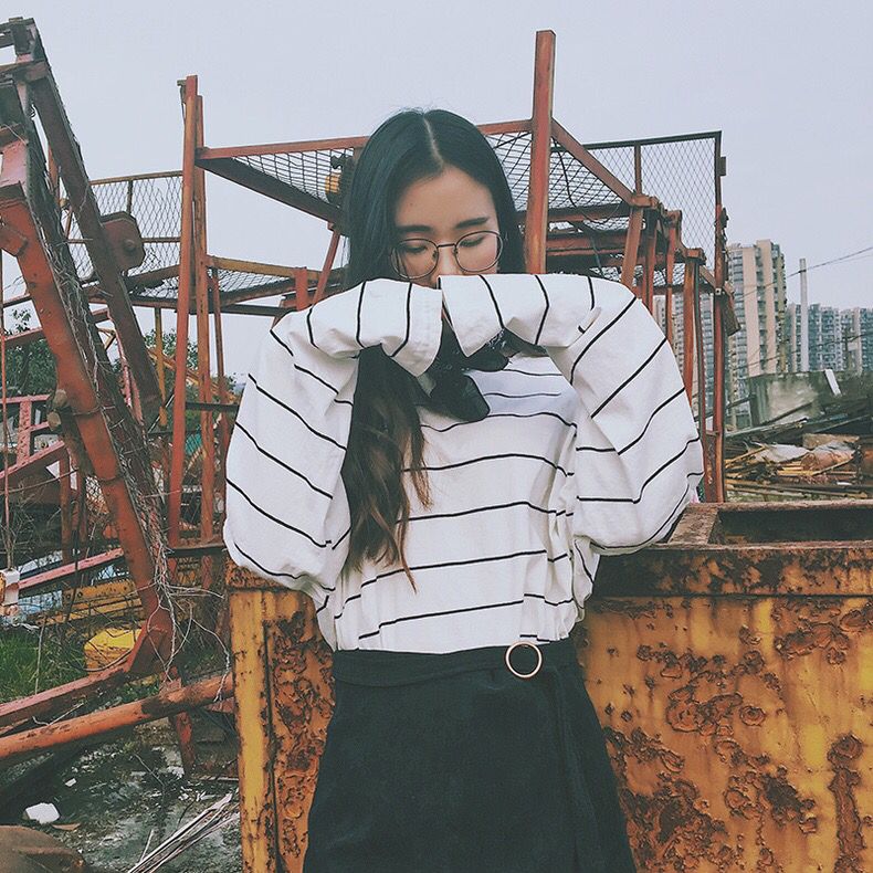 宽松的圆领条纹衫搭配,袖子长长的,显得俏皮又个性,单穿也可以很时尚,面料亲肤柔软,穿着舒适随性,随意搭配上素纯色下装,就可以美美的出行啦。