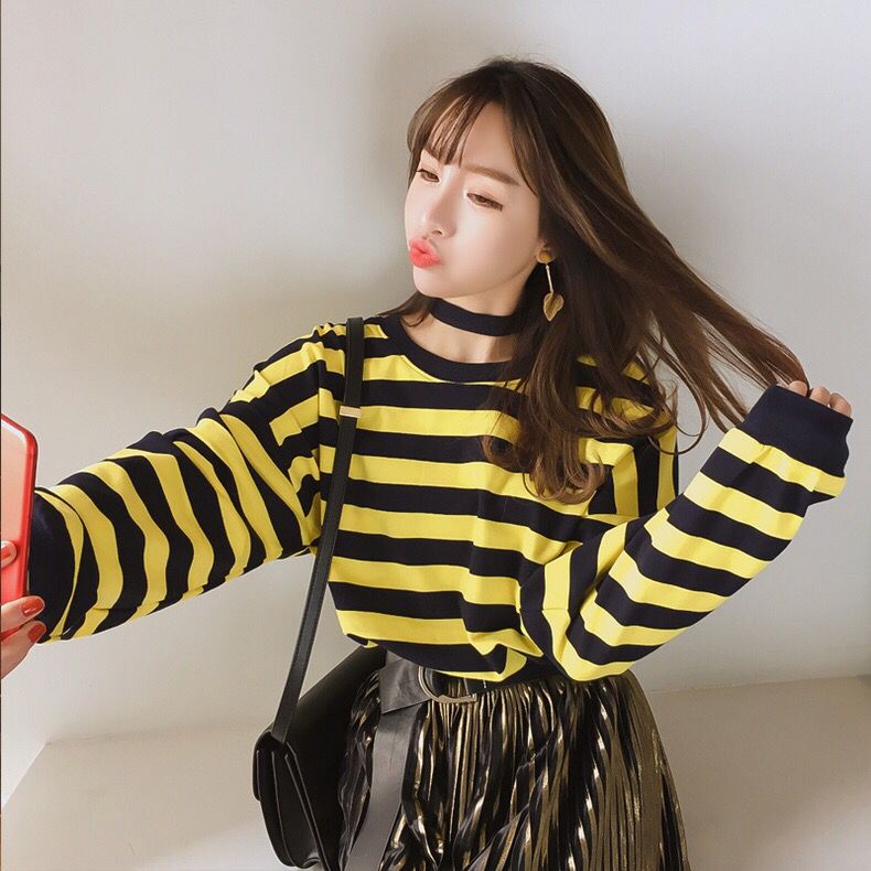 蝙蝠袖的粗横条纹T恤,宽松显瘦的版型,小蜜蜂一样的黄黑条纹、经典的黑白条纹两款,展现青春洋溢的款式最是好搭配,无论是出游还是校园穿着都毫无违和感,减龄又时尚。美上天的早春连衣裙搭配