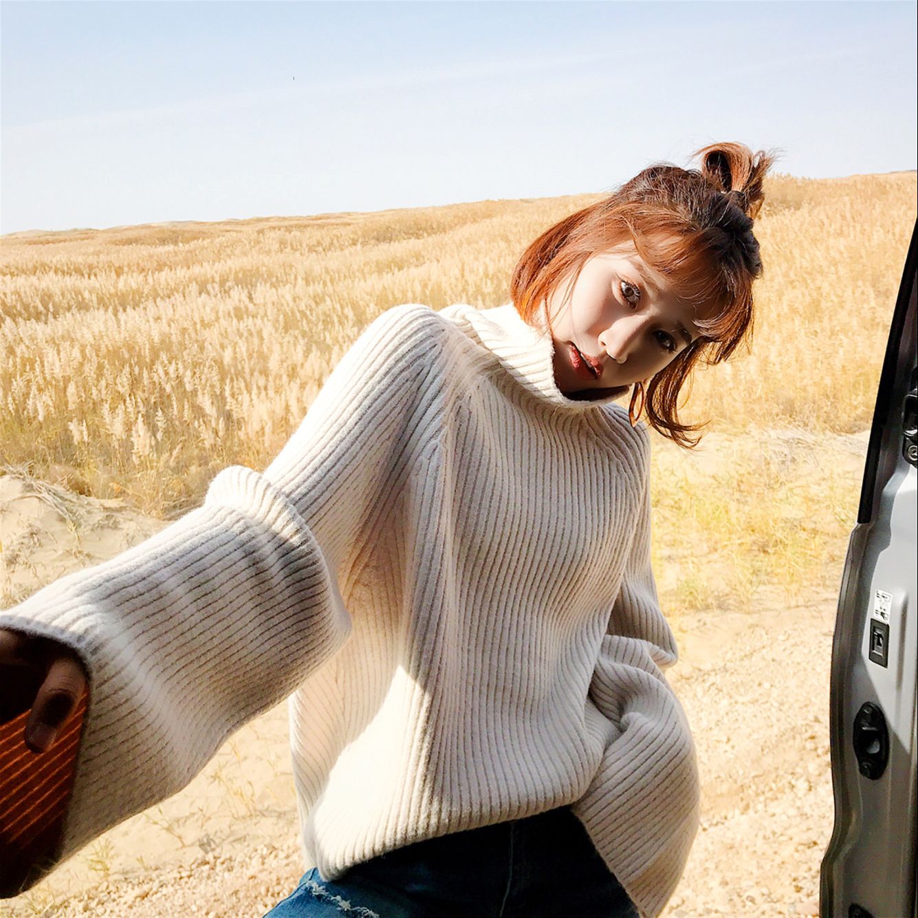 短款式看着较为简单明了,但是上身的效果绝对是又显瘦又显嫩。 蝙蝠袖的设计温暖的包裹住你,怎么穿搭都非常好看,看着就有一股想保护你的冲动!