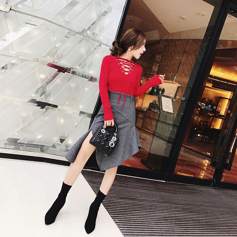比较高领的毛衣,我更喜欢半高领,半高领更加修饰脖颈,谁让宝宝是短脖子星人呢,委屈脸,半高圆领的设计,修饰脖颈,使得脖子看起来更加修长一些,修身的版型,真心超修饰身材的哈,塑造玲珑身形。