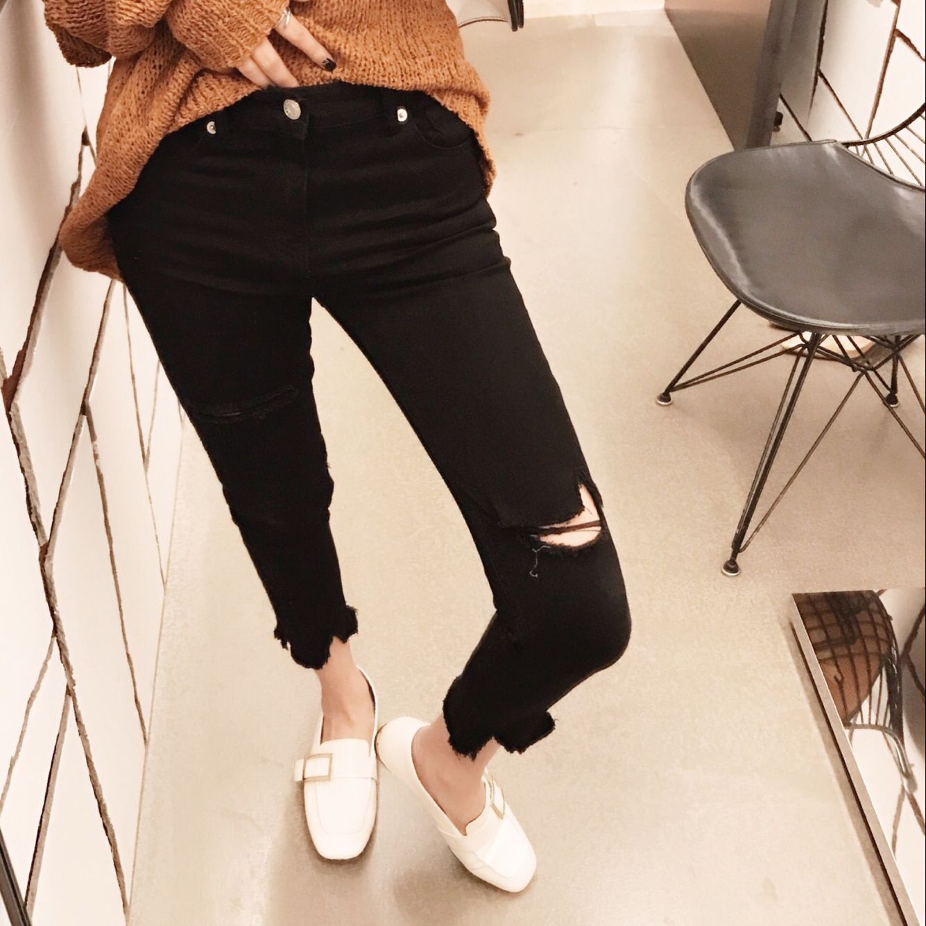 这款属于搭配率炒鸡高的那种脚口的剪破毛边处理洋气又显个性腿部有割破的设计,整体不会太单调,反而有一丝帅气感,而且这款特别显瘦不挑身材,随便穿搭都能穿出自己独特的风格!