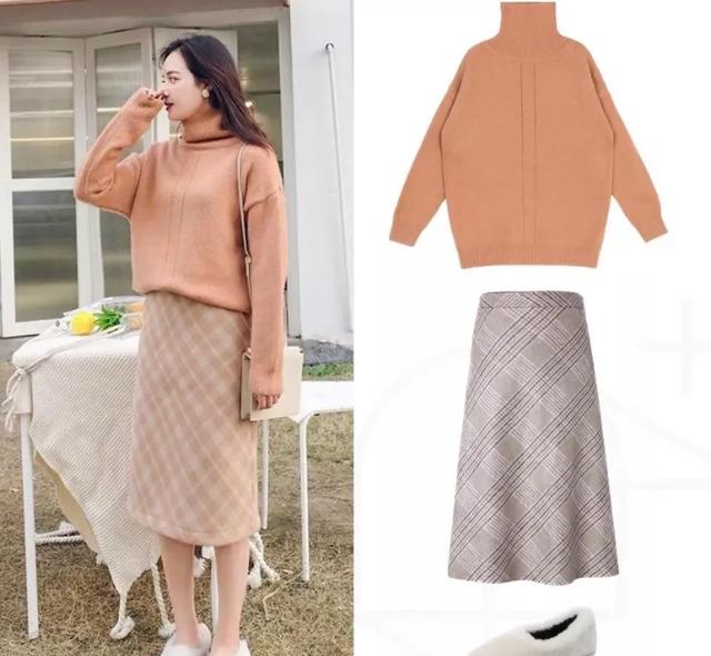 1、杏粉色真的非常耐看啊。毛衣下身搭配什么好看?简直是上身就不舍得脱下来那种,搭配格纹半身裙,简直了,这就是女神,气质女神啊。当然还要加上最近红得不行的毛毛鞋。所以你也是一个气质女神了。快试试吧。