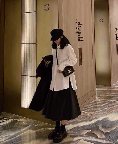一个休闲的白衬衫是没有太大特色的,但是只要搭配对的话,休闲的白衬衫也可以穿出来高级的感觉。比如说你可以在白衬衫下面搭配一个比较有质感的黑色休闲裙子,这样白加黑搭配到一起就有了一种比较上档次的感觉了,即经典又高级,这样的内搭穿上一个得体的大衣也算是蛮般配的,在逛街的时候脱下来大衣,里面的内搭也是比较吸睛的。