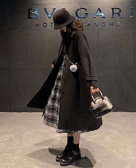 半身裙这些年以来都是比较热门的一种款型,因为它充满了浓浓的女人味,是每一个女孩子都比较喜欢的款式。其实大衣和半身裙的结合也是很完美的,本来大衣的款式是比较大女人风格的,而半身裙偏小女人一点,两者结合到了一起就有了一种气质和气场完美结合的既视感。