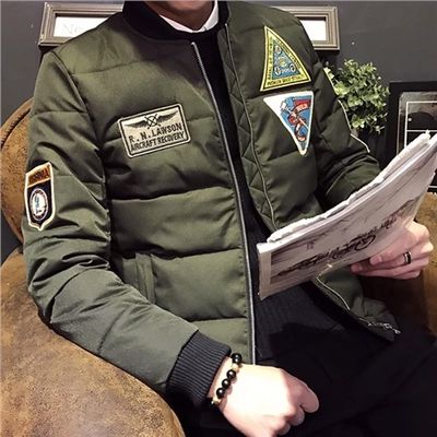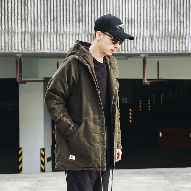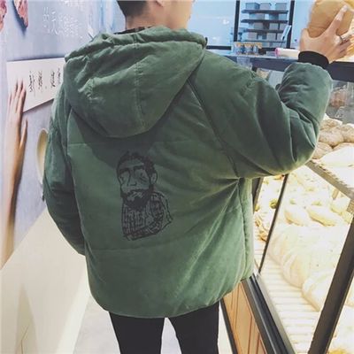 军绿色一款棉服外套,连帽的设计十分的休闲,背后的图案印花也是充满了个性的味道。这款的版型很好,任何男生都可以轻松驾驭,还有一点点小清新的感觉,学生党穿着很合适。