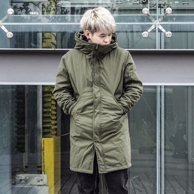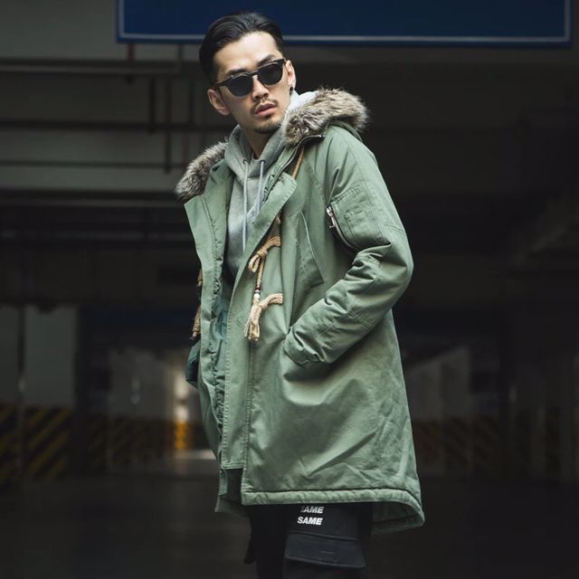 比较厚实的一款军绿色外套,中长的款式可以很好的展现男生的身线。宽松的版型不挑身材,任何风格的男生都可以很好的驾驭,搭配毛衣或者是卫衣来穿都很有味道哦,加上毛领的点缀,质感更是赞赞的。