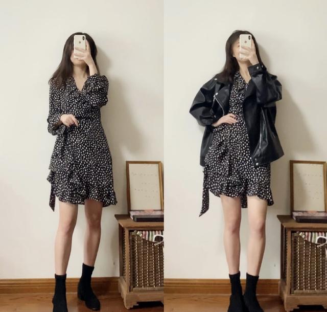到了春天,爱美的姑娘们总是迫不及待地翻出珍藏了已久的小裙子,像是波点碎花裙,既端庄又清新。简约的气质带着些许的甜美,裙摆选择褶皱的花边设计,一颦一笑间更是摇曳生姿。黑色波点碎花裙,单穿甜酷清新。如果套一件皮衣外套的话,更加挺括帅气,耍酷感与甜美范撞击,营造出一种甜酷的时尚风。尤其是搭配一双小短靴还可以凹出大长腿的造型呀!甜美又酷感十足的穿搭你喜欢吗?