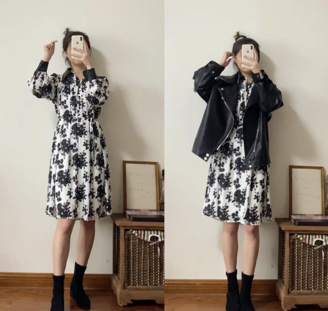 黑色与白色的撞击,总是经典的考验。像这种白底黑花刺绣的连衣裙,更是高级雅致。给人一种古风美女的视觉体验,但如果想要更加灵动清新的风格。只需要一件皮衣外套就能打破整体造型的沉闷感,时尚又甜美有范,也是非常减龄的穿搭呢。