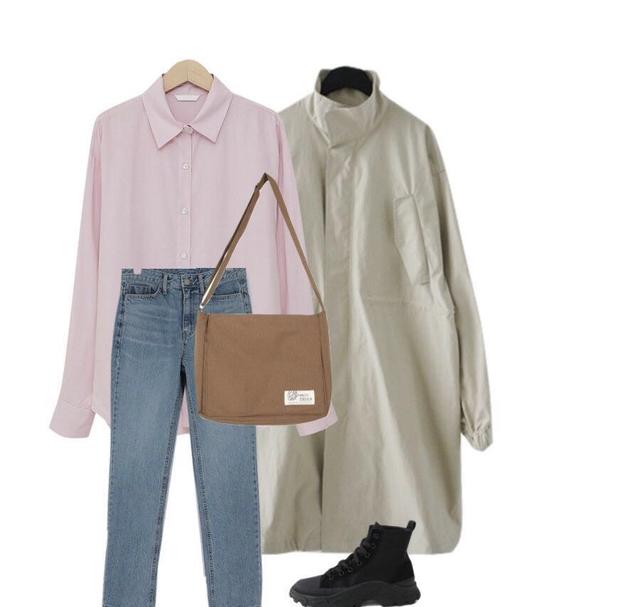 这一套造型搭配之后,是恰到好处的优雅与温柔结合的感觉,很适合女人上班时候穿搭,粉色衬衫搭配淡淡的卡其色休闲长款外套,集温柔与优雅于一身。