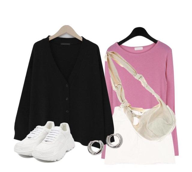 这款粉色的上衣相对紧身,同时短款的设计也让女人看起来更加性感轻盈。而搭配了白色半身裙之后,让女人整体气质偏向优雅纯净,也是比较减龄的套装款式。而黑色的针织外套则能够让你看起来更加稳重和成熟。