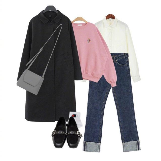 牛仔裤相对是比较清新,也比较适合和粉色上衣搭配的裤装类型,搭配之后会给人一种像是夏天一样的清新气质。而外套则用简约深灰色大衣来搭配,增加了你的气质和稳重感,让整体造型更加有格调。