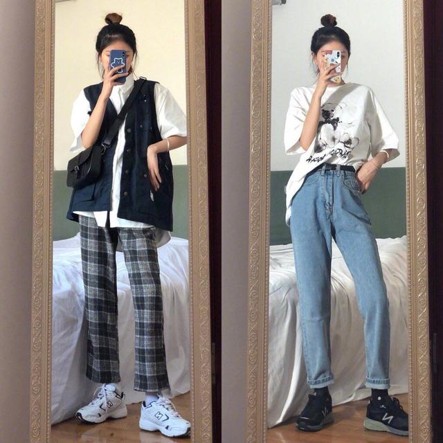 上面这件白色的小T恤不仅非常宽松,而且非常清新舒适。夏天也适合搭配白T恤。这也会显得女人温柔一点,而白色T恤是最好的。