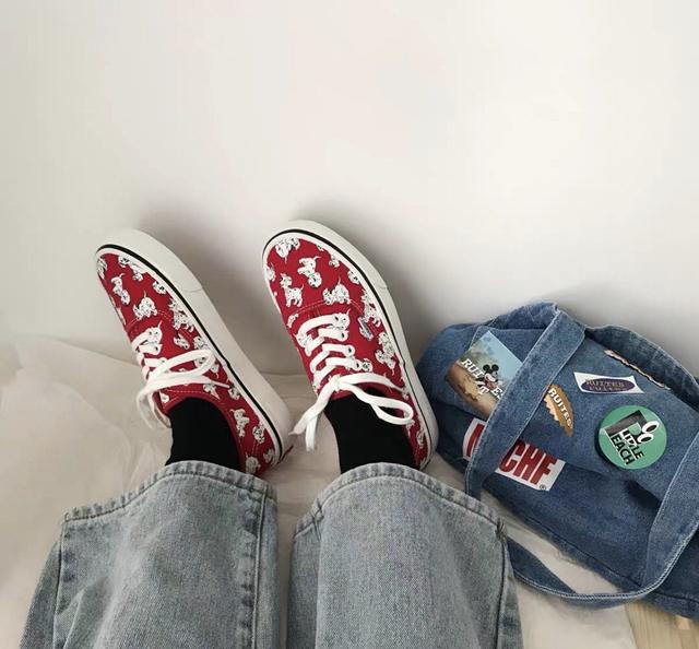 更有一部分女生崇尚色彩鲜明的对比,喜欢这种大红色的印花鞋子。不瞒您说,很多直男觉得这就像二十年前穿的那种土棉鞋,实在太土气了,也非常的掉价呀。现在才知道,原来男女的审美差距那么大。