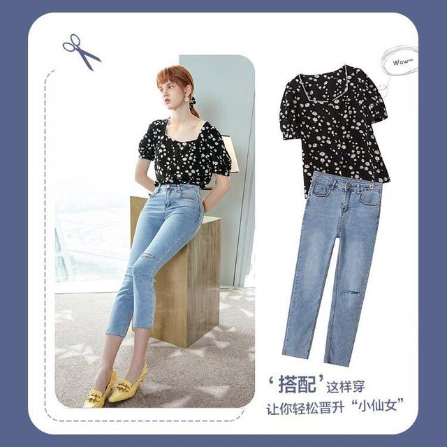 方领的碎花黑底上衣搭配九分牛仔裤,可以瞬间提升个人气质。这一身打扮非常的显身材,有御姐范还很减龄。年纪偏大的成熟女人,很适合穿着一身打扮,搭配上嫩黄色的尖头皮鞋,就更加的时尚了。