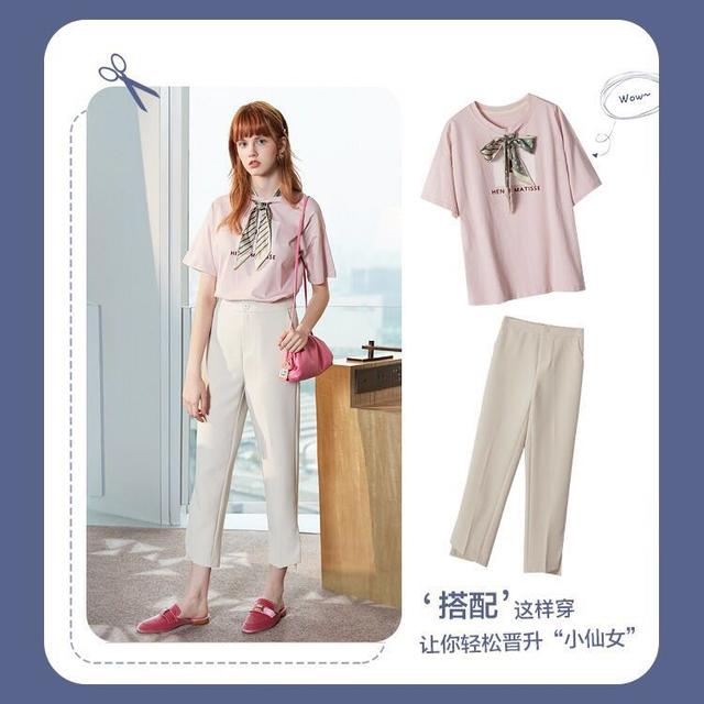 这一款的服饰整体看起来粉嫩嫩的,非常适合职业女人在春季里穿搭。粉色的宽松T恤搭配白色的九分西裤,非常有职业女性的味道,小仙女日常穿搭图片成熟中带点可爱的味道。